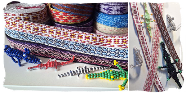 Webborten und PerlentiereInfos: Mein Name ist Natascha Gruber. Ich handarbeite seit fast 40 Jahren von Stricken, Häkeln, Sticken, Weben bis Knüpfen ist alles dabei und noch mehr. Dieses Mal bringe ich brettchengewebte Borten und Perlentiere mit.