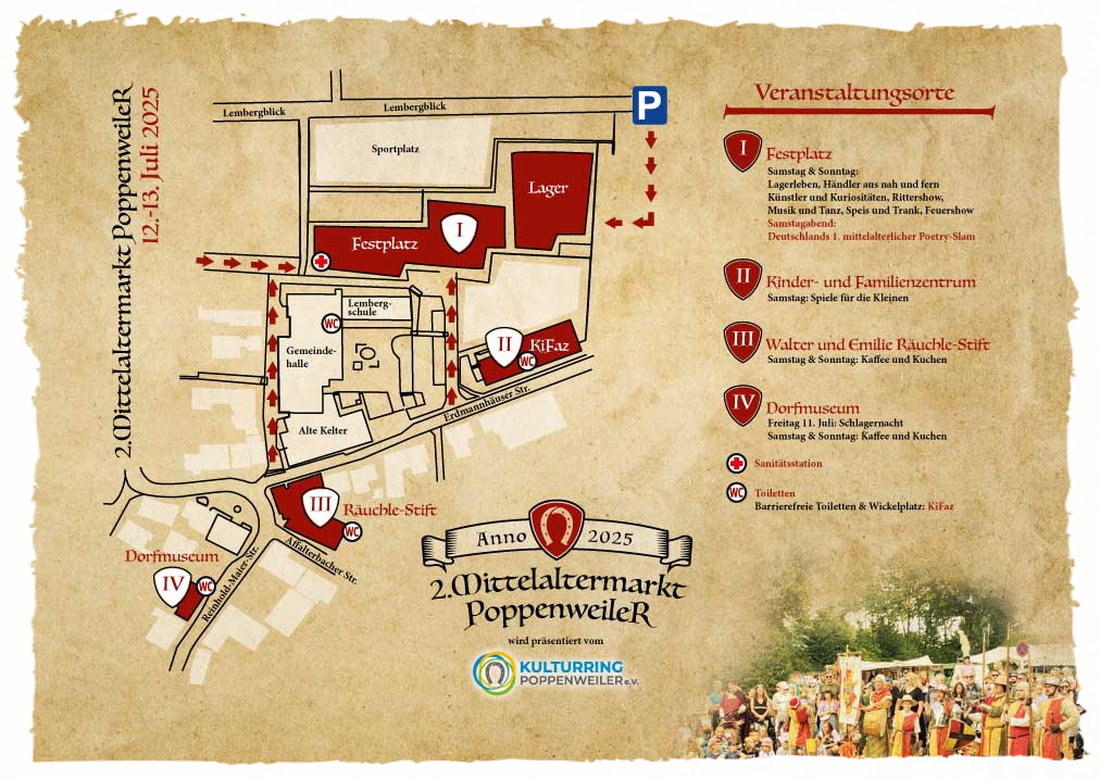 Der Mittelaltermarkt findet auf dem Festplatz statt, dieser befindet sich hinter der Lembergschule, Erdmannhäuser Straße 1