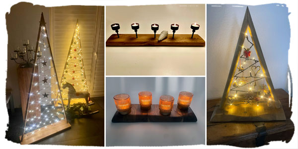 HolzarbeitenInfos: In Sommers Kreativwerkstatt entsteht der ganz individuelle Weihnachtsschmuck: Einzelstücke, nachhaltig und platzsparend, entweder nach Wunsch komplett dekoriert oder zum Selberschmücken.