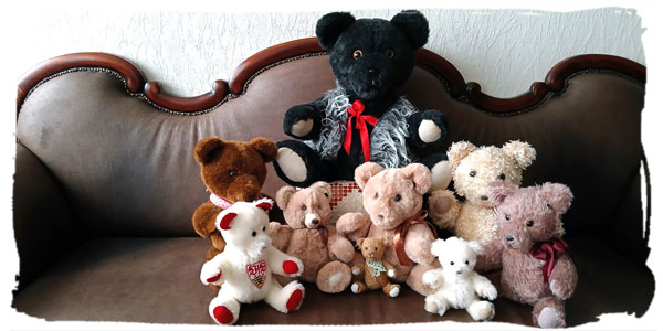TeddybärenInfos: Aus 22 Stoff Einzelteilen, zusätzlich Gelenke, Augen, Nase nähe ich vorhanden einen Teddybär.