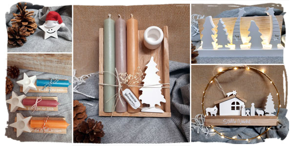 HolzarbeitenInfos: In Sommers Kreativwerkstatt entsteht der ganz individuelle Weihnachtsschmuck: Einzelstücke, nachhaltig und platzsparend, entweder nach Wunsch komplett dekoriert oder zum Selberschmücken.Kontakt: folgt