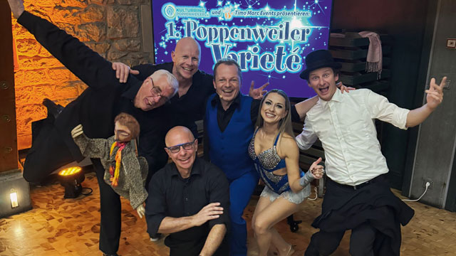 Auch für das 2. Poppenweiler Varieté hat unser künstlerischer Leiter und Moderator Timo Marc wieder ein exzellentes Programm zusammengestellt: Weltmeister der Zauberei, Comedy, Akrobatik und Jonglage aus dem "Cirque du Soleil" werden Euch dieses Mal begeistern.